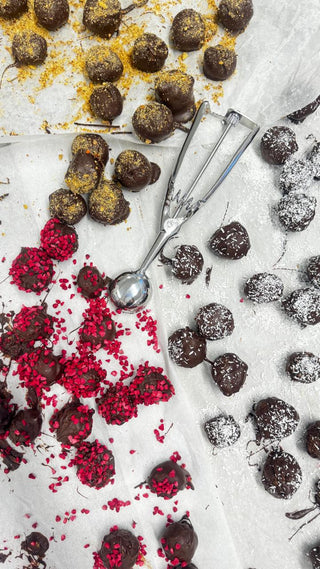 Fullur af náttúrulegum hráefnum sem dreift er ofan á dökkt súkkulaði.